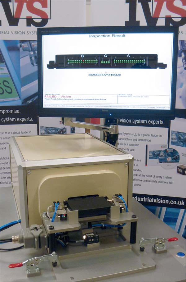 The system is integrated into a standalone machine, with removable tooling to allow different product types to be inspected. The complete vision system is shrouded, with only a “letter box” viewing window, to stop ambient lighting conditions affecting the vision system result.