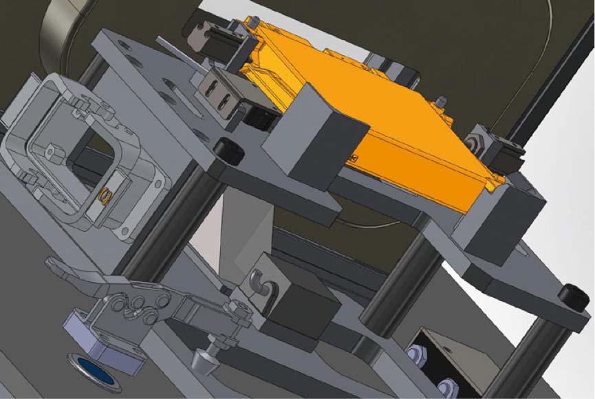 The digital cameras utilise telecentric lenses over a small field of view giving micron level detection of movement of the interface pins in the module. The various angled lights give the ability to process images of the pins in different lighting conditions as well as providing a view of the connector’s datum to measure from.
